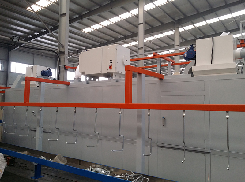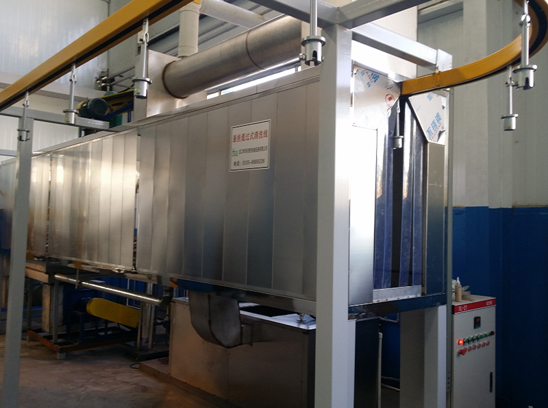 采用噴淋清洗配合液下射流清晰地新型工藝,由于清洗在液下完成,減少煤油在空氣中的霧化,既節(jié)省了生產(chǎn)成本,又提高了產(chǎn)品質(zhì)量。配合懸掛式輸送機(jī)經(jīng)浸防銹油、瀝油、吹干等工藝完成清洗過程。